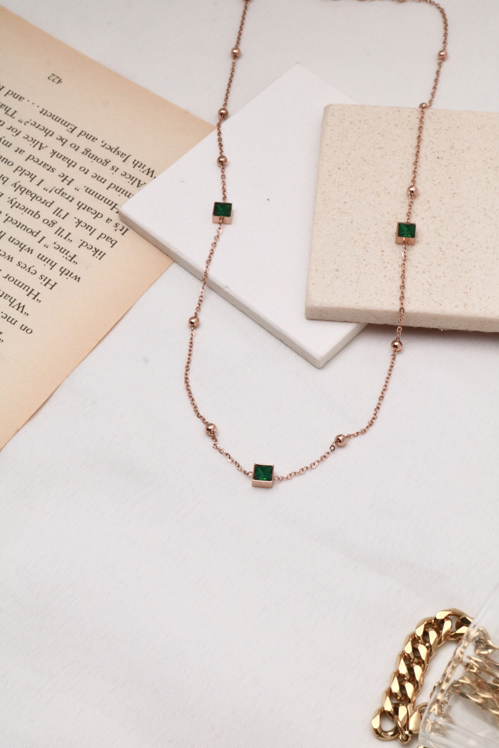 Square Green Stones Chain